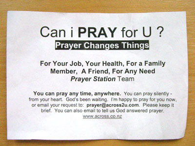 Also endlich mal den 2. Handzettel bezüglich Gott, den ich in Auckland bekommen hab ...